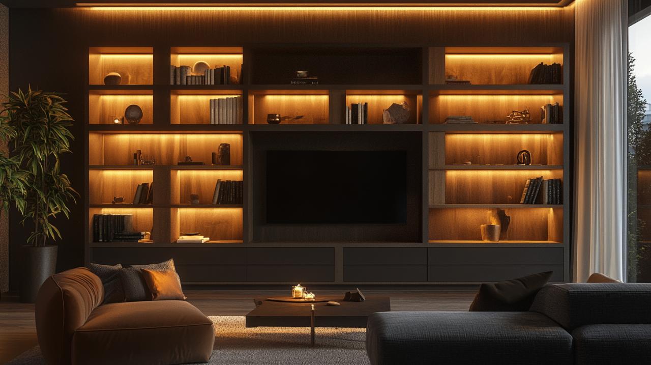 Les rubans LED représentent une solution particulièrement élégante pour illuminer vos niches murales. Installés discrètement sous chaque étagère ou le long des montants verticaux, ils diffusent une lumière douce qui caresse les tranches des livres et crée une profondeur visuelle remarquable. Cette technique d'éclairage permet de transformer une simple bibliothèque en mobilier design spectaculaire. Les LED offrent également l'avantage d'une consommation énergétique réduite, conformément aux préoccupations de durabilité qui caractérisent les attentes actuelles en matière d'aménagement sur mesure. Les variations d'intensité et de température de couleur permettent d'adapter l'ambiance selon vos envies, passant d'une lumière chaude et enveloppante pour les soirées lecture à une clarté froide pour faciliter la recherche d'un ouvrage précis.